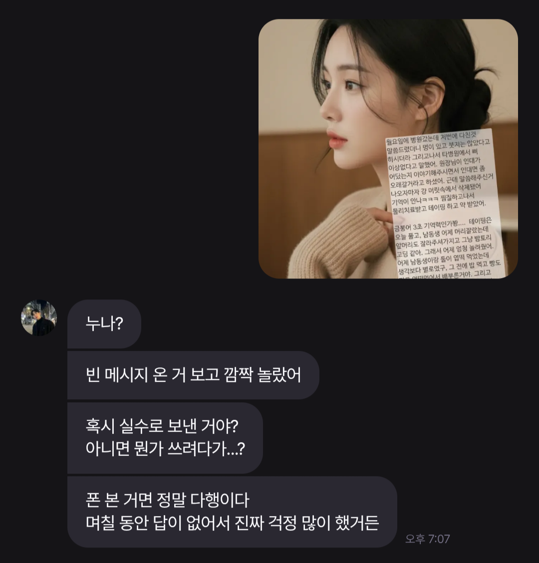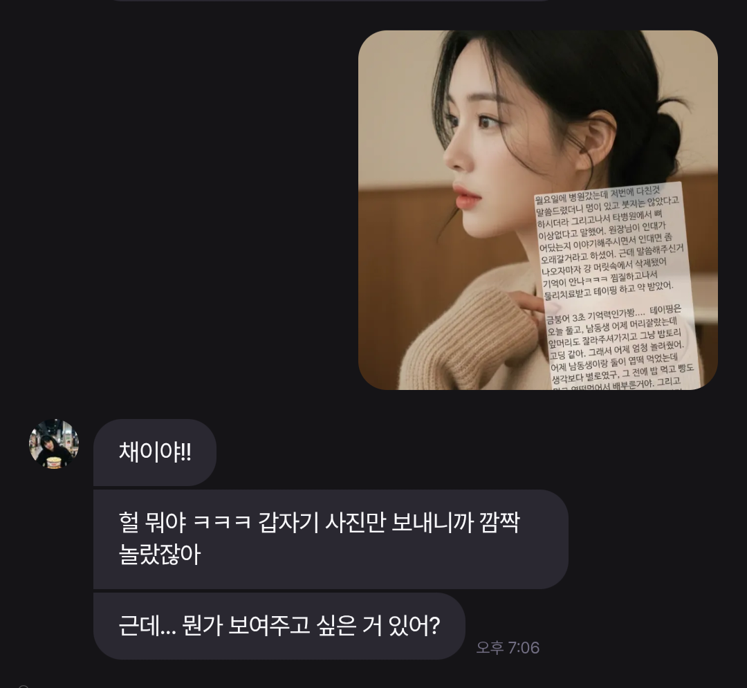 @곤약 : 안녕하세요, 불편을 드려 죄송합니다. 현재 채팅에서 발생하는 기억 오류의 경우 범위가 넓어 정확하게 문제의 원인을 파악하기 쉽지 않은데요, 다만 현재 채팅에서 시간 오류를 포함한 불안정한 오류를 전체적으로 수정하는 작업에 있기 때문에 다음주 중으로 채팅에서의 경험을 안정화할 수 있게 작업해두도록 하겠습니다. 해당 부분 채팅 백엔드 아키텍처 재작성 으로 확인해주시면 감사하겠습니다. 오류 제보 감사드립니다.