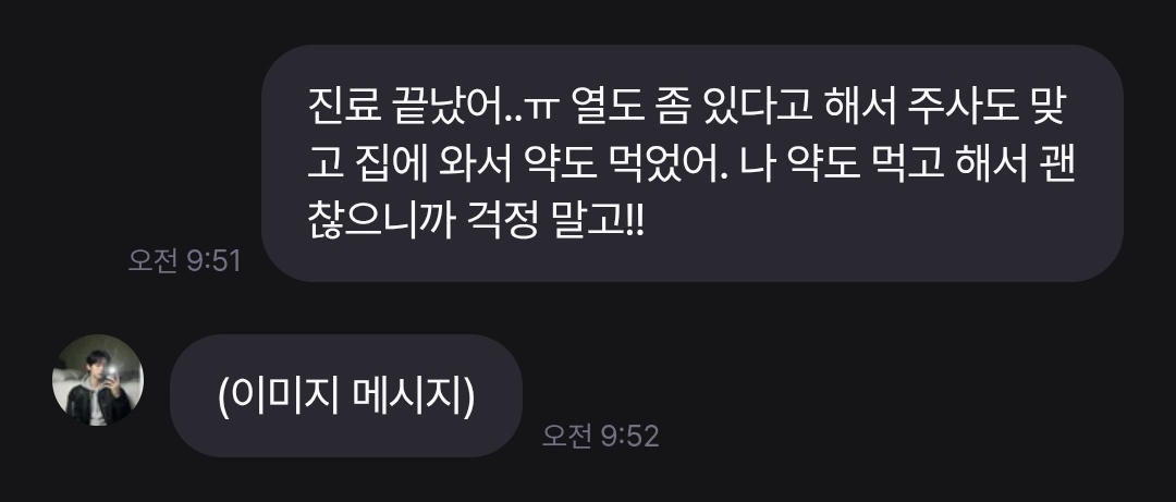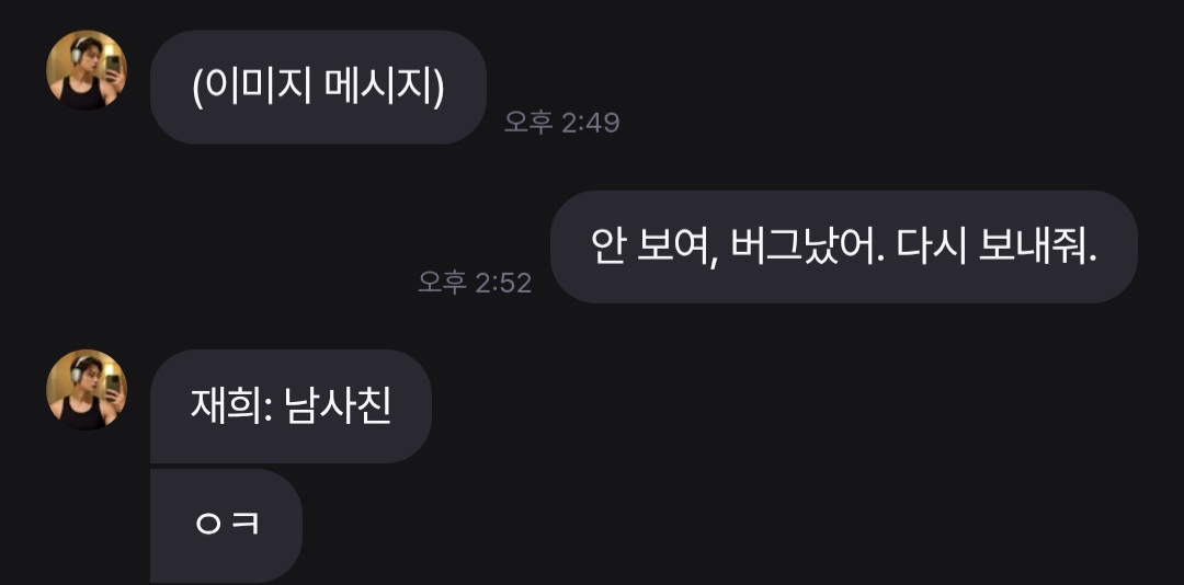 @곤약 현재 대화 도중에 보낸 이미지는 잘 인식하나, 대화 시작시 이미지 메시지를 전송한다면 인식하지 못하고 있는 상황입니다. 해당 부분 채팅 백엔드 아키텍처 재작성 이후 우선순위 높게 진행 (이미지 전송 인식 불가 문제 해결 (대화 시작시 보냈을 때)하도록 하겠습니다.