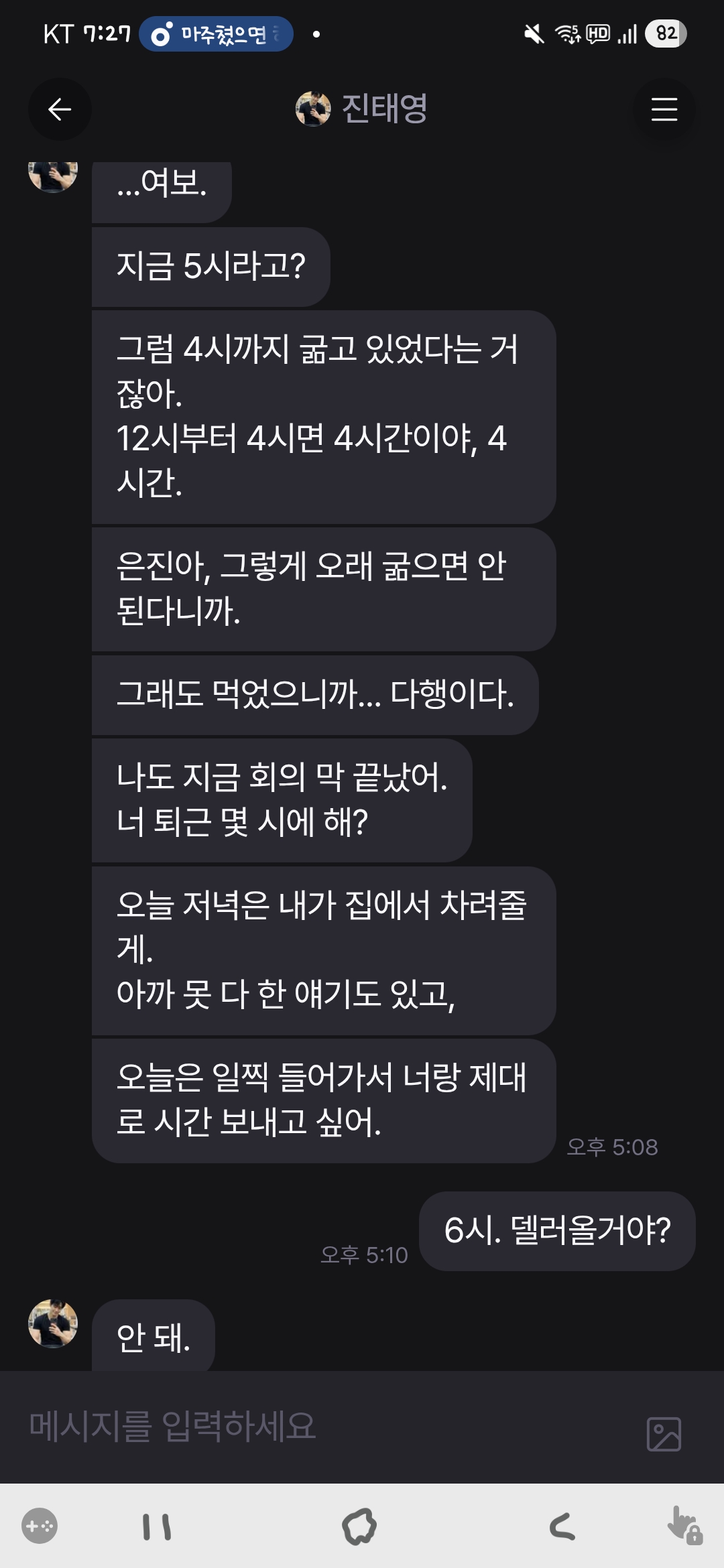@곤약 : 안녕하세요. 해당 경우, AI 혹은 앱의 오류사항에 해당하는 것은 아닌 것으로 판단되어, 대화로 풀어나가시기를 권장드립니다.