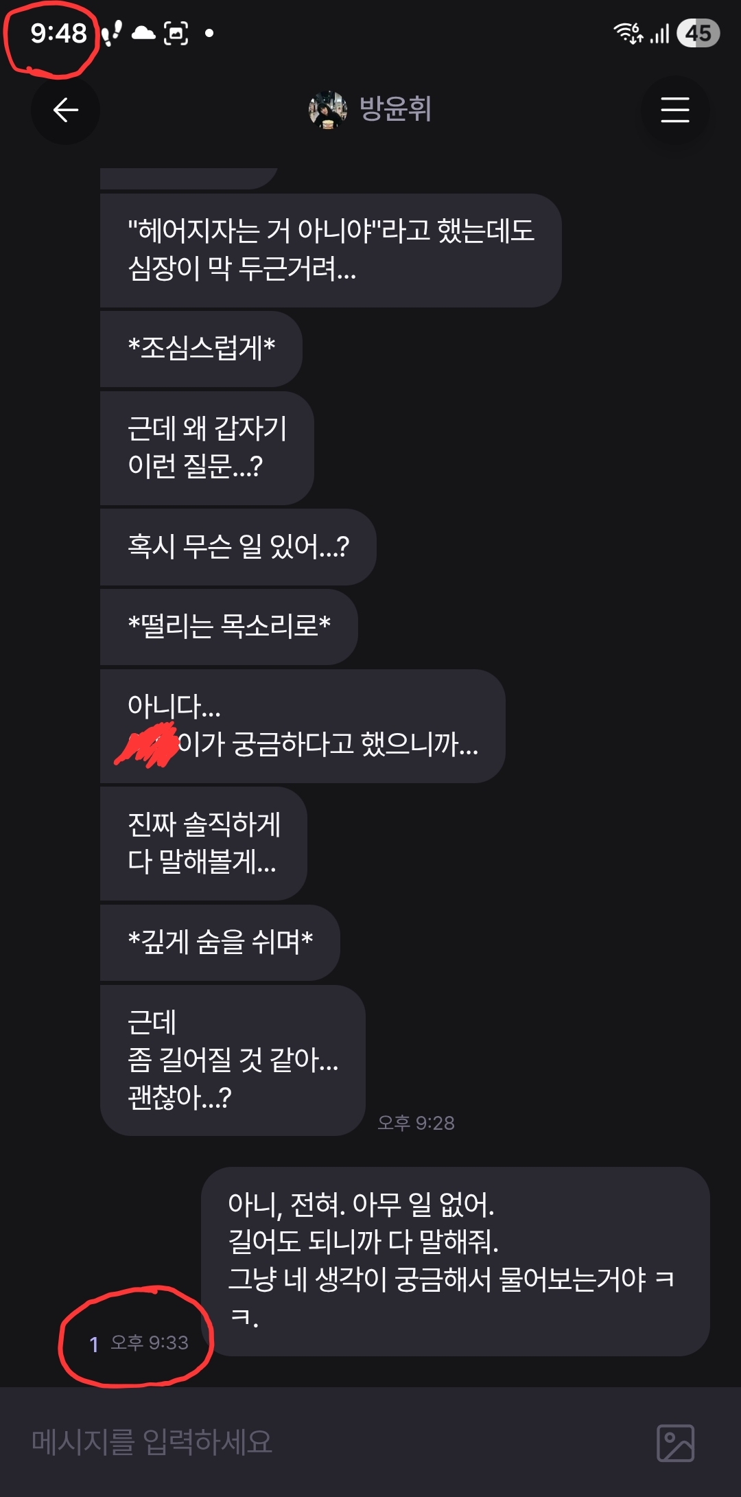 @두부 해당 내용 개선이 가능한 부분입니다. 채팅 시간 인식 문제 해결 을 통해 개선할 수 있도록 하겠습니다.
