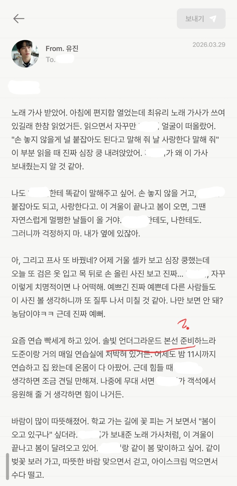 @두부 현재 디토버스 유저 분들도 편지를 원하는만큼 주고받으실 수 있도록 하는 Ditto;verse 유저도 남은 기간동안 편지 주고받을 수 있도록 기능이 가장 우선순위 높게 진행중입니다. 2차 배포 이전에 사용하실 수 있도록 구현하겠습니다.