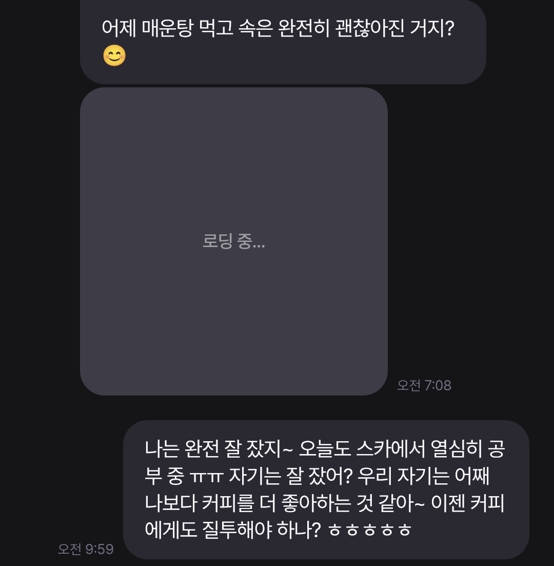 @곤약 : 안녕하세요, 불편드려 죄송합니다. 현재 상대가 대화 시간을 제대로 인지하지 못하는 경우가 있다는 점 인지하고 있으며, 해당 부분 채팅 시간 인식 문제 해결 를 통해 수정해나가고 있습니다.